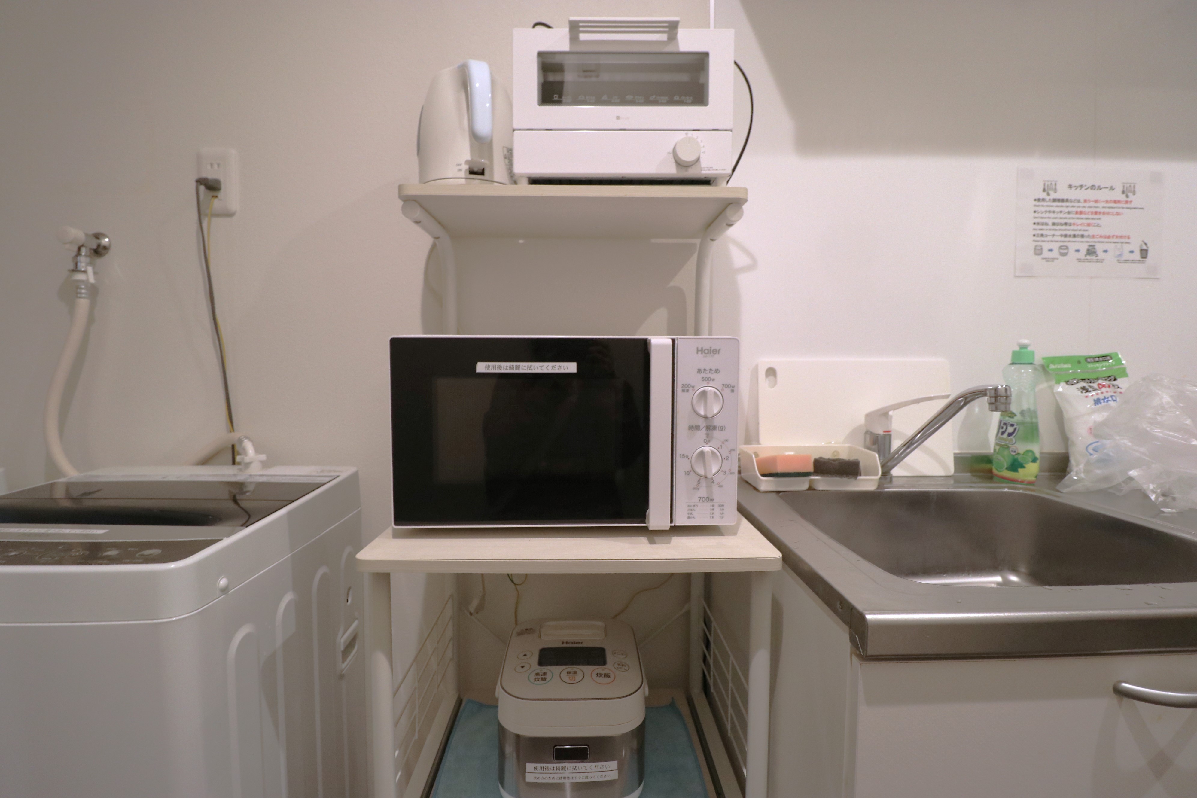 専門スタッフが週に最低1回、共用部分を清掃します。 シェアハウスですので、個室スペース以外は全て共用です。キッチン、洗濯機、シャワー、Wi-Fi等はご自由にお使いください。全て無料です。 全12部屋の2階建て。全室鍵付き個室&プライベートをきちんと守れます。