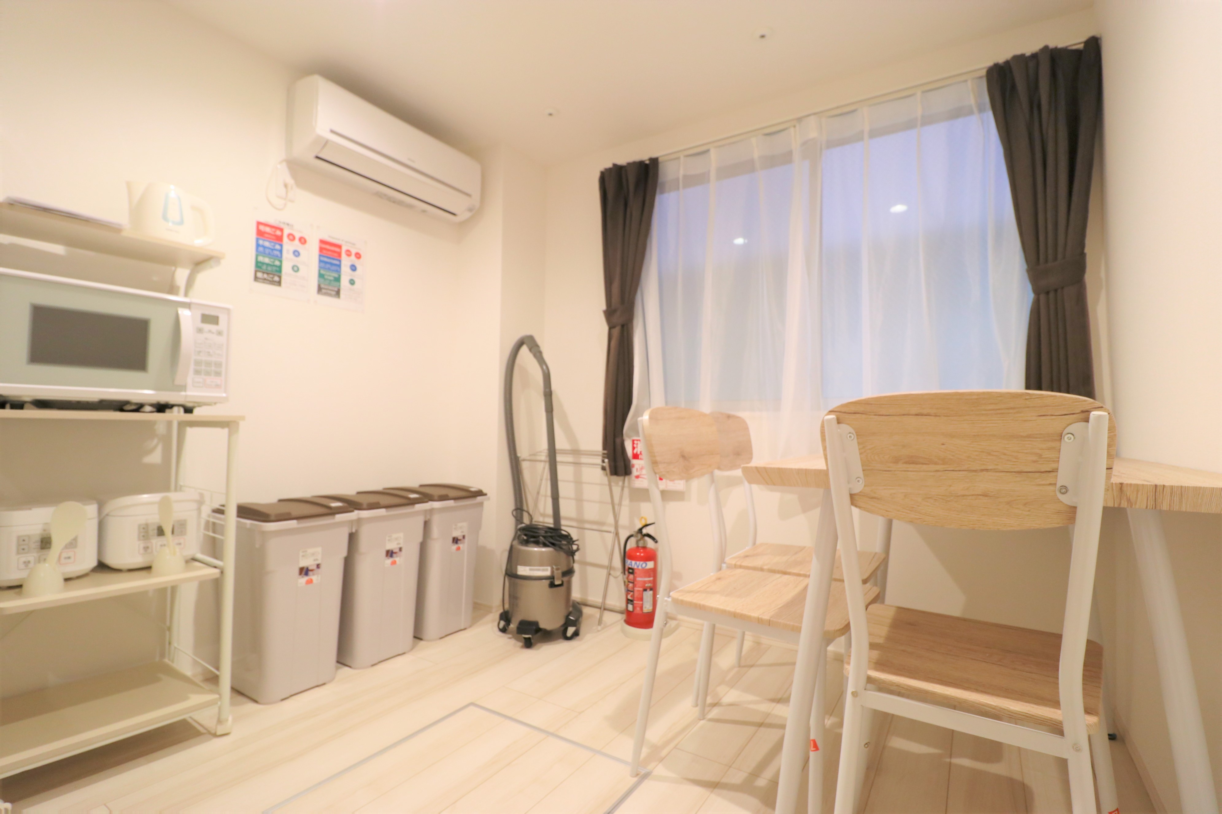 専門スタッフが週に最低1回、共用部分を清掃します。 シェアハウスですので、個室スペース以外は全て共用です。キッチン、洗濯機、シャワー、Wi-Fi等はご自由にお使いください。全て無料です。 全17部屋の3階建て。全室鍵付き個室&プライベートをきちんと守れます。