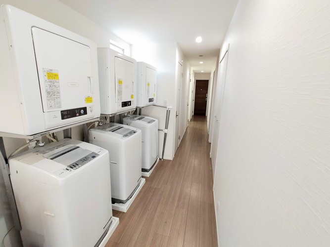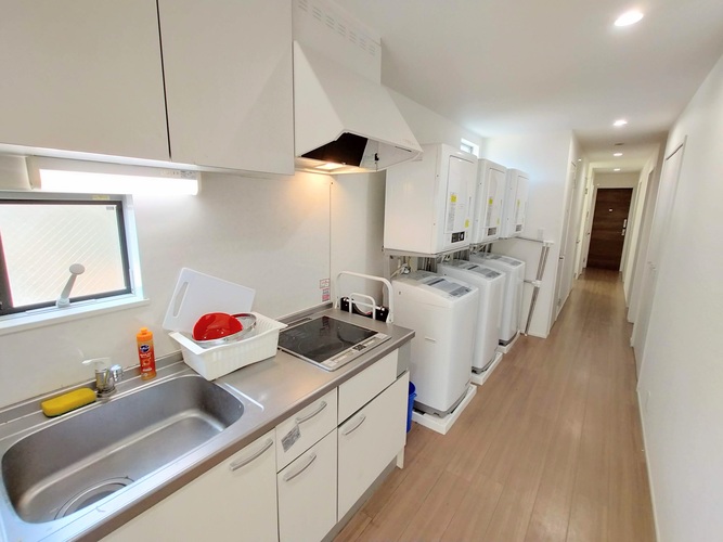 専門スタッフが週に最低1回、共用部分を清掃します。 シェアハウスですので、個室スペース以外は全て共用です。キッチン、洗濯機、シャワー、Wi-Fi等はご自由にお使いください。全て無料です。 全14部屋の2階建て。全室鍵付き個室&プライベートをきちんと守れます。