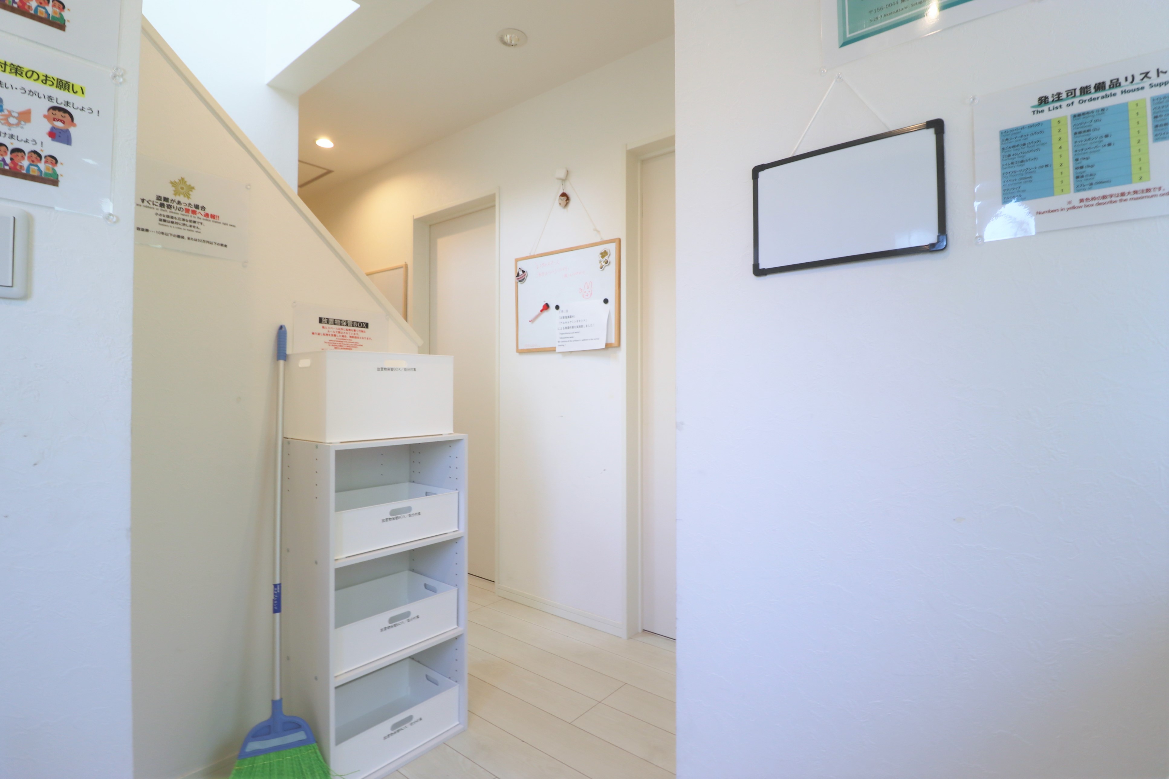 専門スタッフが週に最低1回、共用部分を清掃します。 シェアハウスですので、個室スペース以外は全て共用です。キッチン、洗濯機、シャワー、Wi-Fi等はご自由にお使いください。全て無料です。 全15部屋の2階建て。全室鍵付き個室&プライベートをきちんと守れます。