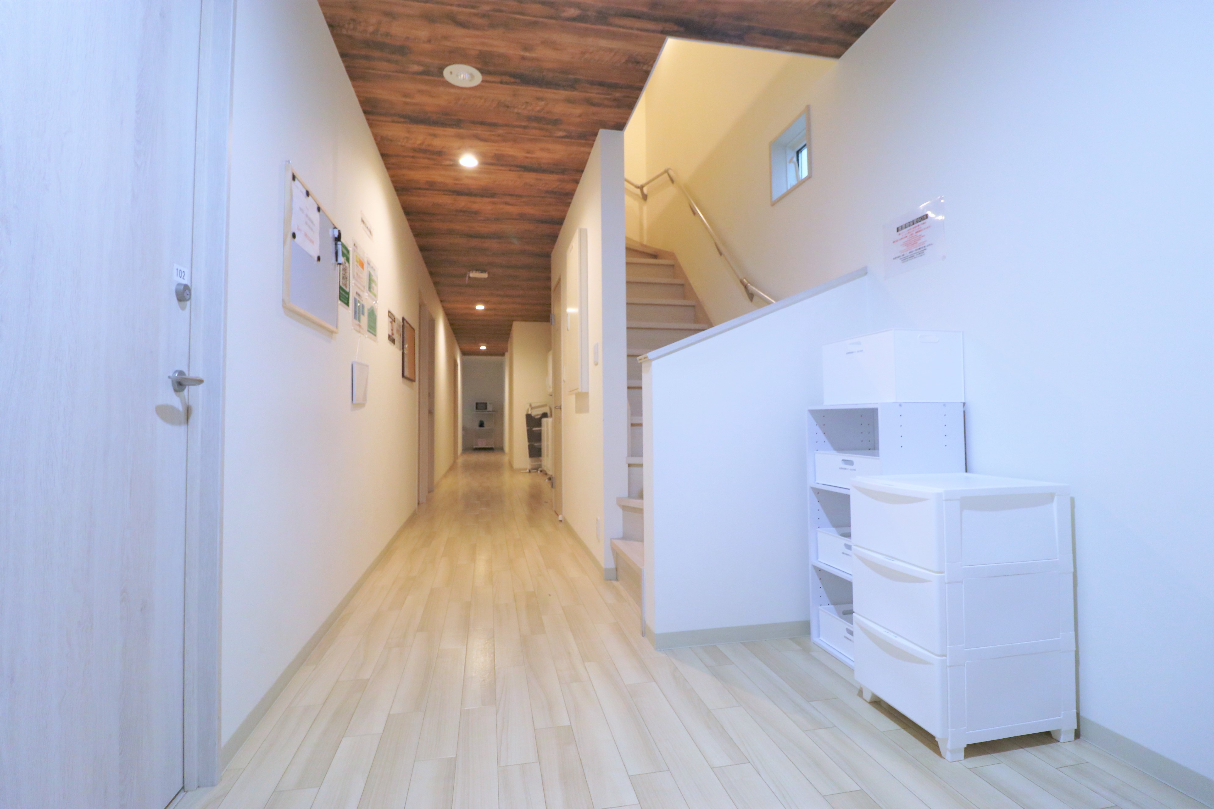 【築浅物件】専門スタッフが週に最低1回、共用部分を清掃します。 シェアハウスですので、個室スペース以外は全て共用です。キッチン、洗濯機、乾燥機、シャワー、Wi-Fi等はご自由にお使いください。全て無料です。全12部屋の2階建て。全室鍵付き個室&プライベートをきちんと守れます。
