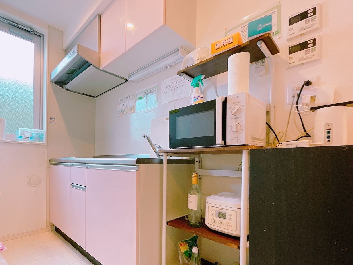 専門スタッフが週に最低1回、共用部分を清掃します。 シェアハウスですので、個室スペース以外は全て共用です。キッチン、洗濯機、シャワー、Wi-Fi等はご自由にお使いください。全て無料です。 全19部屋の2階建て。全室鍵付き個室&プライベートをきちんと守れます。