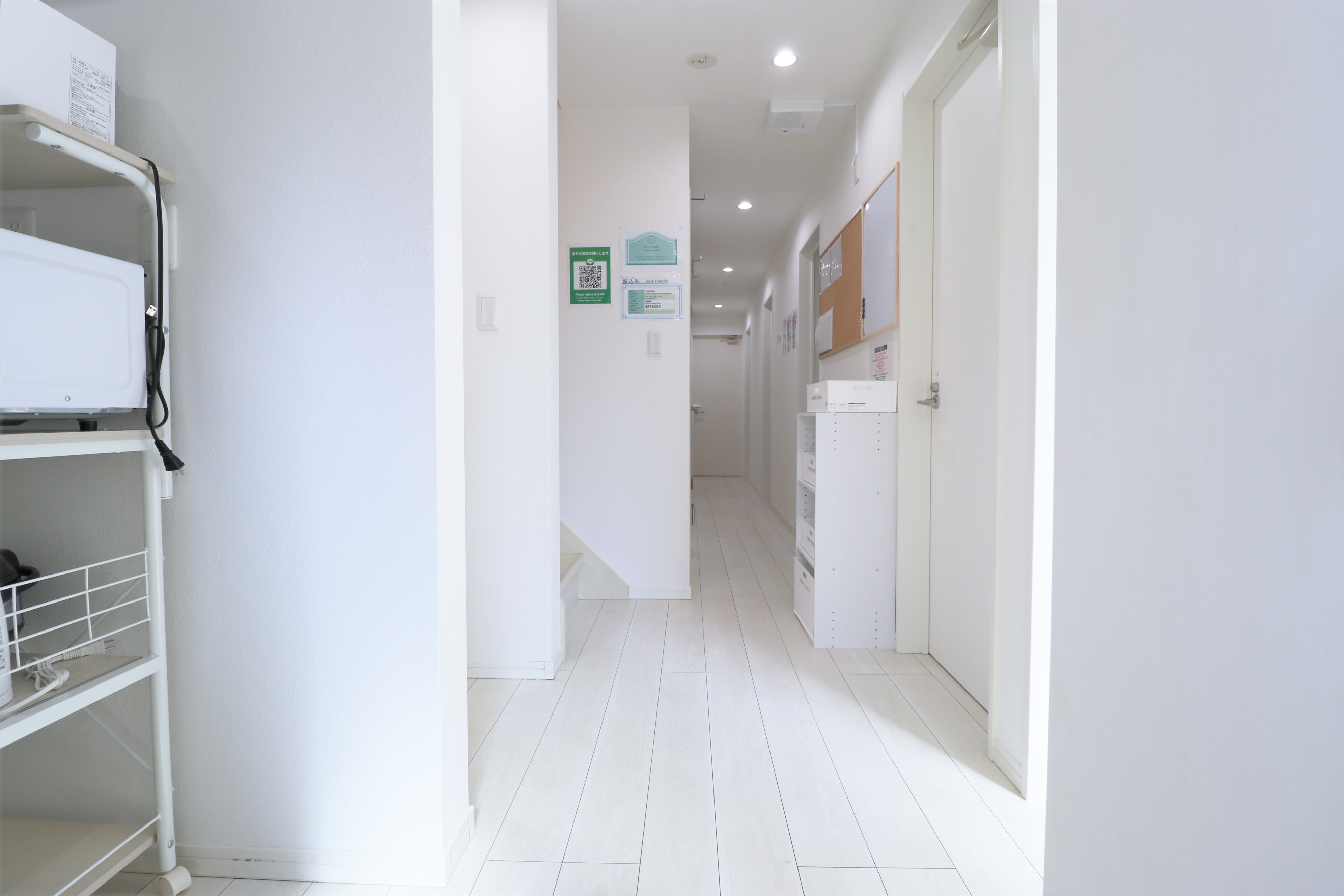 専門スタッフが週に最低1回、共用部分を清掃します。 シェアハウスですので、個室スペース以外は全て共用です。キッチン、洗濯機、シャワー、Wi-Fi等はご自由にお使いください。全て無料です。 全14部屋の2階建て。全室鍵付き個室&プライベートをきちんと守れます。