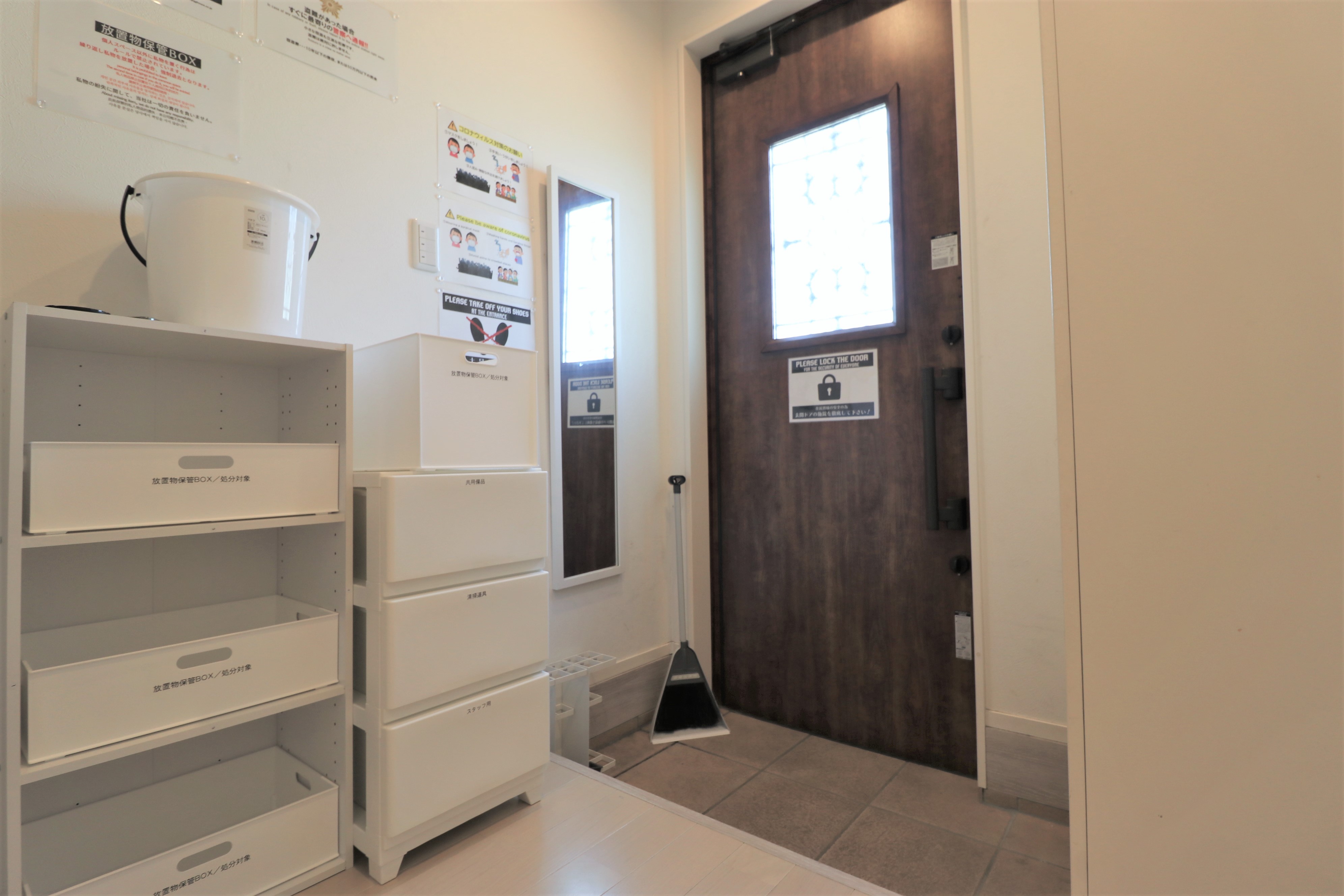 専門スタッフが週に最低1回、共用部分を清掃します。 シェアハウスですので、個室スペース以外は全て共用です。キッチン、洗濯機、シャワー、Wi-Fi等はご自由にお使いください。全て無料です。 全12部屋の2階建て。全室鍵付き個室&プライベートをきちんと守れます。