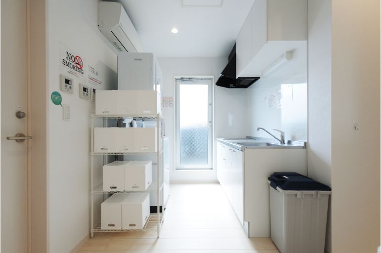 専門スタッフが週に最低1回、共用部分を清掃します。 シェアハウスですので、個室スペース以外は全て共用です。キッチン、洗濯機、シャワー、Wi-Fi等はご自由にお使いください。全て無料です。 全20部屋の2階建て。全室鍵付き個室&プライベートをきちんと守れます。
