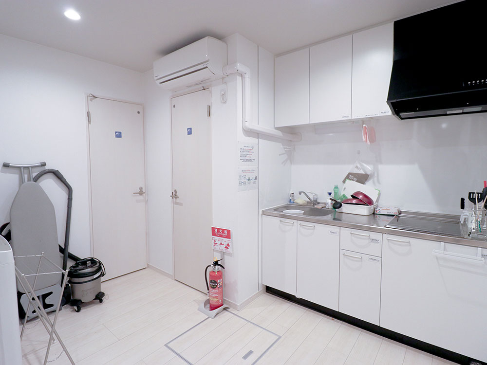 専門スタッフが週に最低1回、共用部分を清掃します。 シェアハウスですので、個室スペース以外は全て共用です。キッチン、洗濯機、シャワー、Wi-Fi等はご自由にお使いください。全て無料です。 全19部屋の2階建て。全室鍵付き個室&プライベートをきちんと守れます。