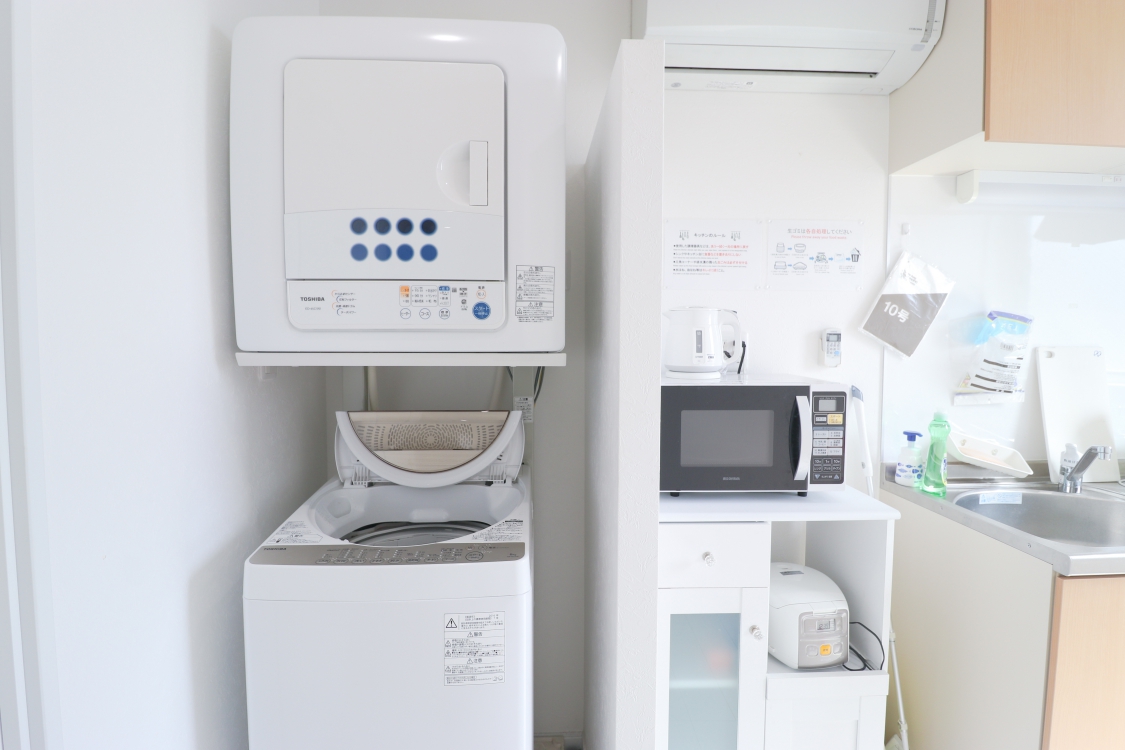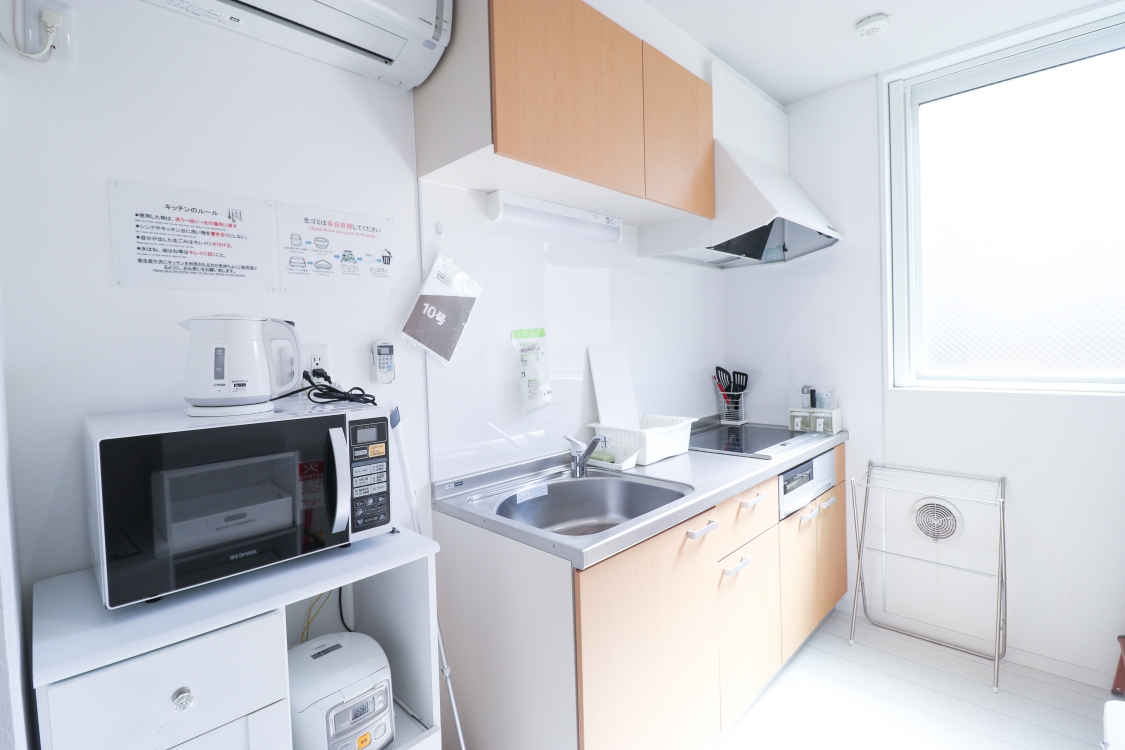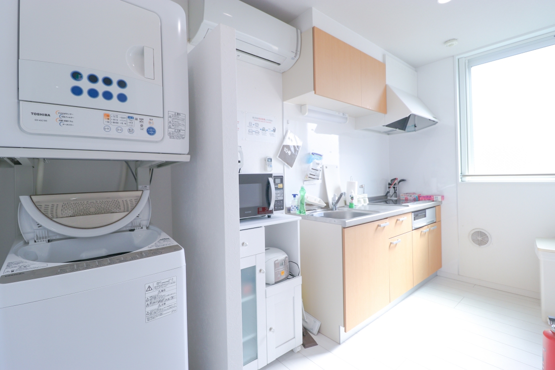 専門スタッフが週に最低1回、共用部分を清掃します。 シェアハウスですので、個室スペース以外は全て共用です。キッチン、洗濯機、シャワー、Wi-Fi等はご自由にお使いください。全て無料です。 全8部屋の2階建て。全室鍵付き個室&プライベートをきちんと守れます。
