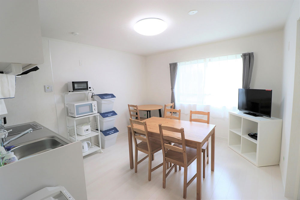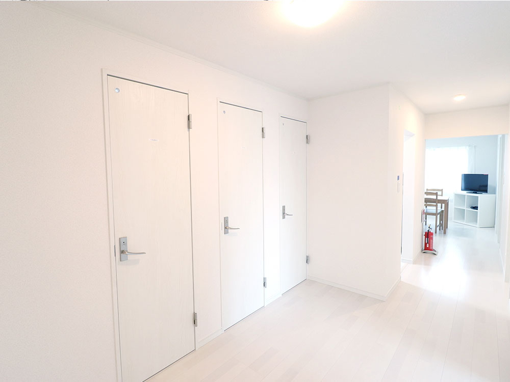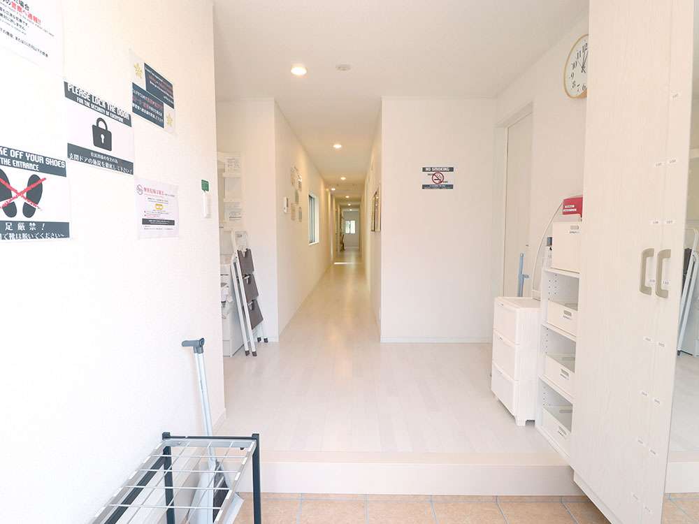 専門スタッフが週に最低1回、共用部分を清掃します。 シェアハウスですので、個室スペース以外は全て共用です。キッチン、洗濯機、シャワー、Wi-Fi等はご自由にお使いください。全て無料です。 全23部屋の2階建て。全室鍵付き個室&プライベートをきちんと守れます。