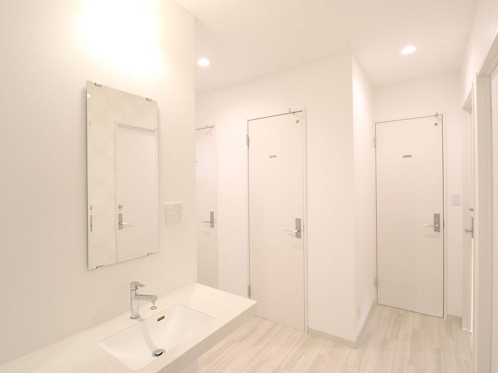 専門スタッフが週に最低1回、共用部分を清掃します。 シェアハウスですので、個室スペース以外は全て共用です。キッチン、洗濯機、シャワー、Wi-Fi等はご自由にお使いください。全て無料です。 全13部屋の2階建て。全室鍵付き個室&プライベートをきちんと守れます。