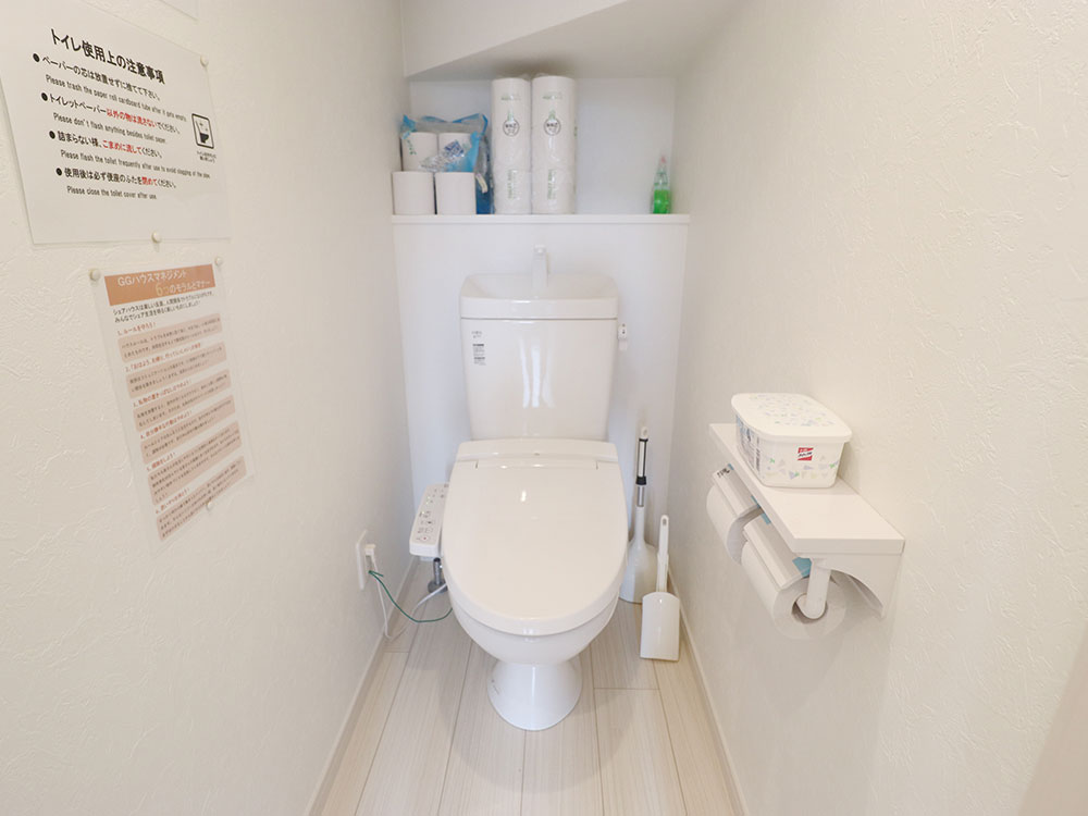 専門スタッフが週に最低1回、共用部分を清掃します。 シェアハウスですので、個室スペース以外は全て共用です。キッチン、洗濯機、シャワー、Wi-Fi等はご自由にお使いください。全て無料です。 全12部屋の2階建て。全室鍵付き個室&プライベートをきちんと守れます。