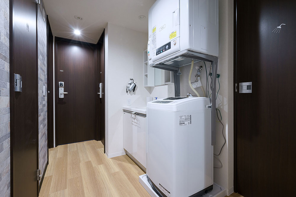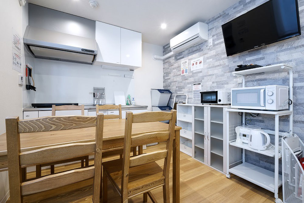 専門スタッフが週に最低1回、共用部分を清掃します。 シェアハウスですので、個室スペース以外は全て共用です。キッチン、洗濯機、シャワー、Wi-Fi等はご自由にお使いください。全て無料です。 全14部屋の3階建て。全室鍵付き個室&プライベートをきちんと守れます。
