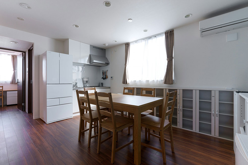 専門スタッフが週に最低1回、共用部分を清掃します。 シェアハウスですので、個室スペース以外は全て共用です。キッチン、洗濯機、シャワー、Wi-Fi等はご自由にお使いください。全て無料です。 全13部屋の2階建て。全室鍵付き個室&プライベートをきちんと守れます。