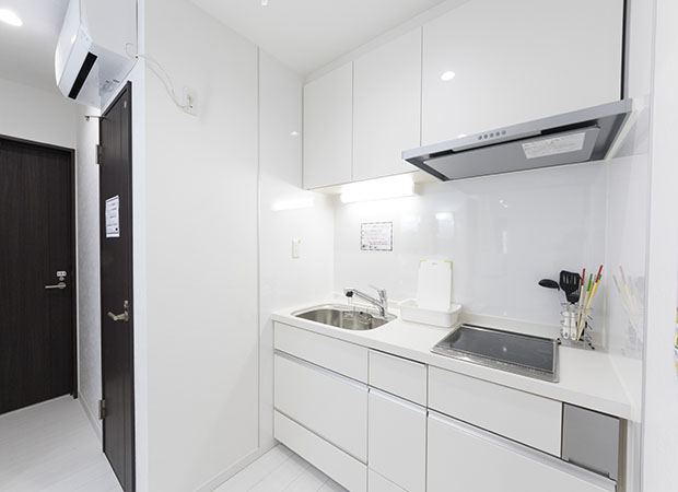 전문 청소 스태프가 최소 주 1회 공용공간을 청소합니다. 쉐어하우스이므로 개인실 이외의 공간은 공용공간입니다. 부엌, 세탁기, 샤워, Wi-Fi 등은 무료로 자유롭게 이용 가능합니다. 전 14개실 2층 건물입니다. 개인실에는 잠금장치가 설치되어 있으므로 사생활 보호가 가능합니다.