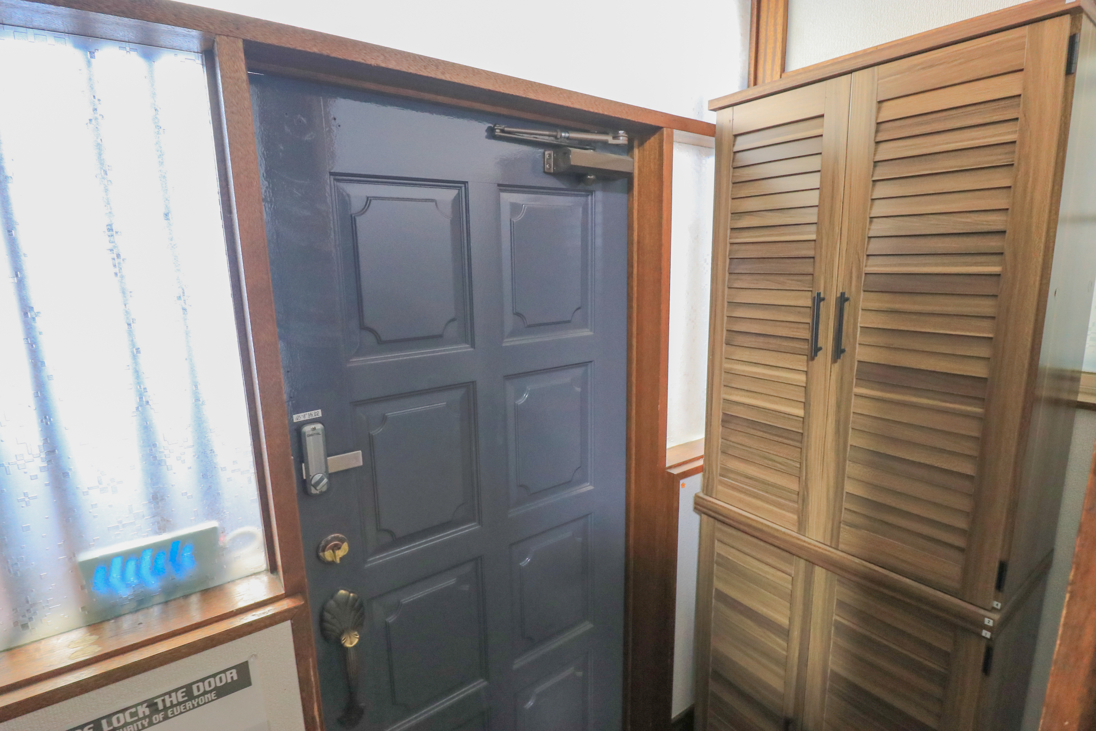 전 10개실 2층 건물입니다. 전 호실 락커설치로 사생활 보호가 가능합니다. 전문 청소스태프가 최소 주 1회 공용공간을 청소합니다. 쉐어하우스이므로 개인실 이외의 공간은 공용공간입니다. 부엌, 세탁기, 건조기, 샤워, Wi-Fi 등은 무료로 자유롭게 이용가능합니다.